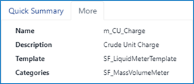 | Quick Summary section - More tab | The More tab displays some characteristics of the selected element. Quick Summary - More tab example ![]() |