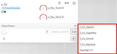 Navigation buttons | Left and right buttons allow you to navigate through the display according to the input or output connections of the selected element. When more than one connection is available (e.g., multiple flows or transfers), then a selection panel displays, allowing you to select the connection you want. Navigating to more than one output ![]() The navigation over the connected elements automatically updates the tool tip information for the selected element. |