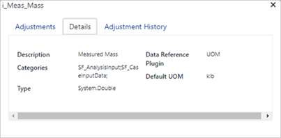 Detail Description Description If a description was entered for the Attribute, this block displays that description. Data Reference Displays the Data Reference value applied to the Attribute's data. Categories Displays the Category/Categories under which the Attribute falls. Default UOM Displays the Unit Of Measure to be used as the default for the Attribute's data. Type Displays the format of the Attribute's data.