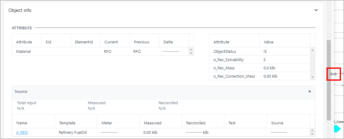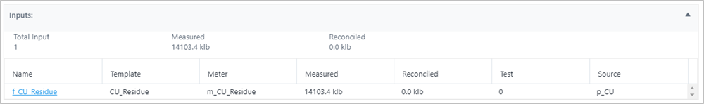 ADA Object info Panel - Attribute sectionInputs The Inputs section contains a table that shows the flows and transactions for point of balance objects (Processes, Nodes, Tanks) that are the inputs of the Element.ADA Object info Panel - Inputs section panel