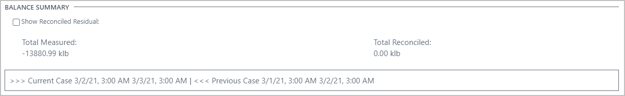 Balance Summary The Balance Summary section summarizes the balance results of the reconciliation. Show Reconciled Residual checkbox: When checked, this checkbox lets you display the effective Reconciled Residual calculated by Sigmafine (that value has no unit of measure).