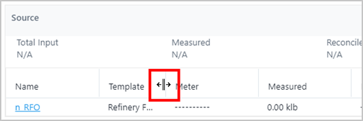 b. When the pointer changes (as shown in the following figure), hold the mouse button down and drag to the right to increase the column size (drag to the left to decrease it).