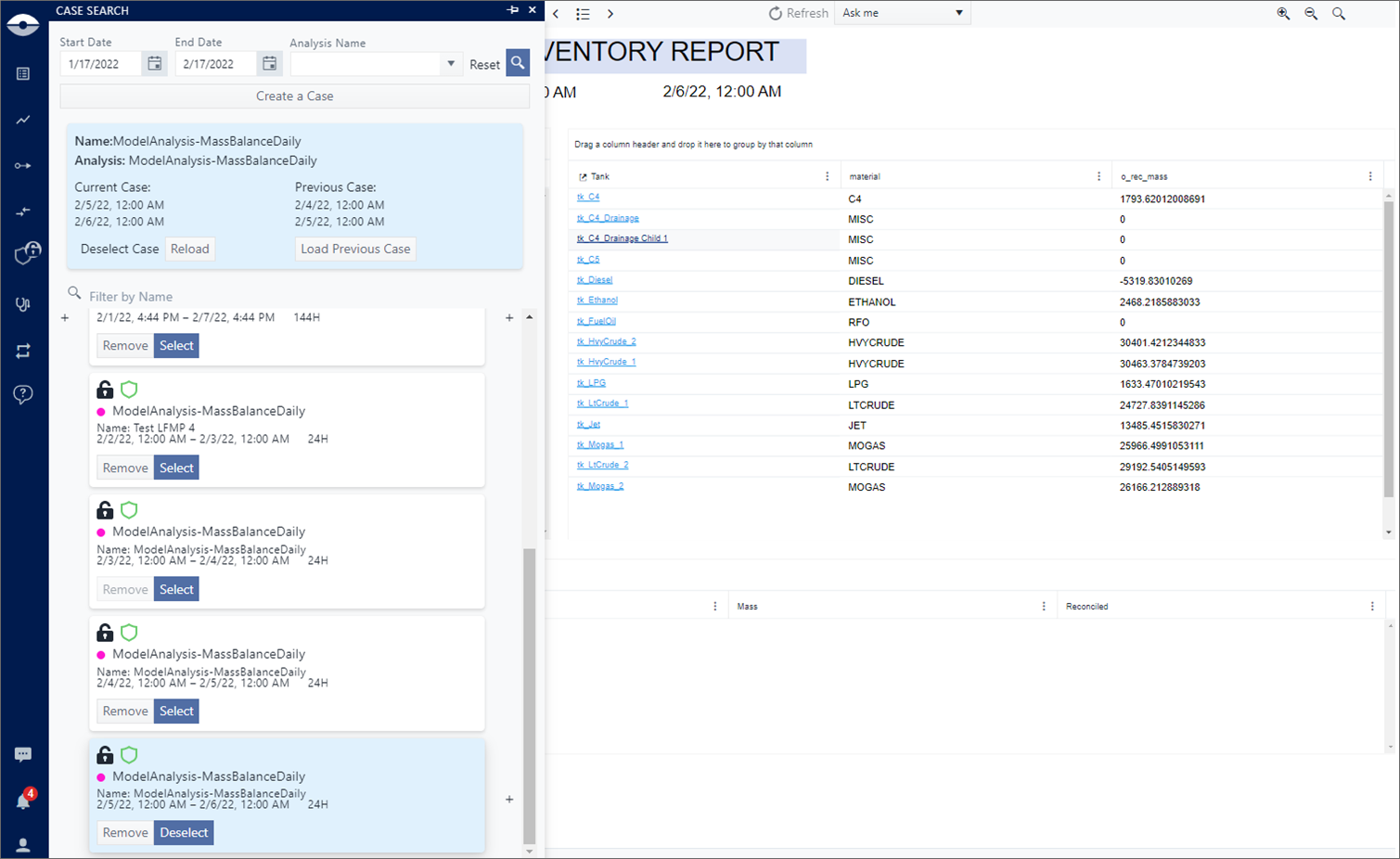 When a 'Model' Report is open, you can select another Case for which to view the data. Simply use the Case Search panel to look for the Case.