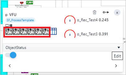 Element Tooltip -- The Element Tooltip shows all reports of type "Case and Element" that have been configured. Each report is represented by an icon. Hovering over an icon reveals the report name.