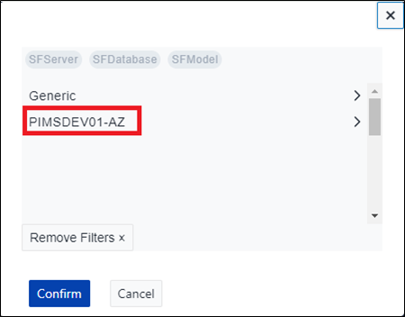 TipTo fix an incorrect filter selection, remove the filter (or filters) in the Filters panel, and reselect. Removing a filter removes all filters following that filter. For example, if you have all three server, database and model filters selected, and you remove the server filter, you will need to reselect all three filters. In the same scenario, if you remove only the model filter, you will only need to reselect the model filter.