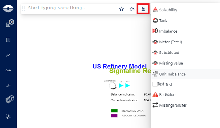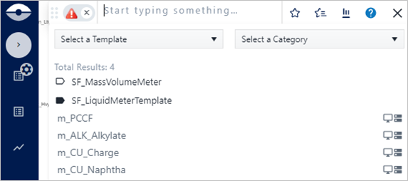 The SFHub Analytics icon on the Search panel allows to open the list of the configured severities that can be selected to start a search on the elements having an associated insight generated by the analytics.