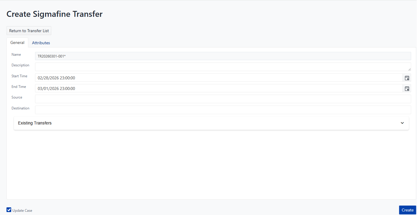 - If the panel is opened from the Transfer Manager without opening a Case, the attribute values are pre-filled according to the original values recorded in the Sigmafine database.