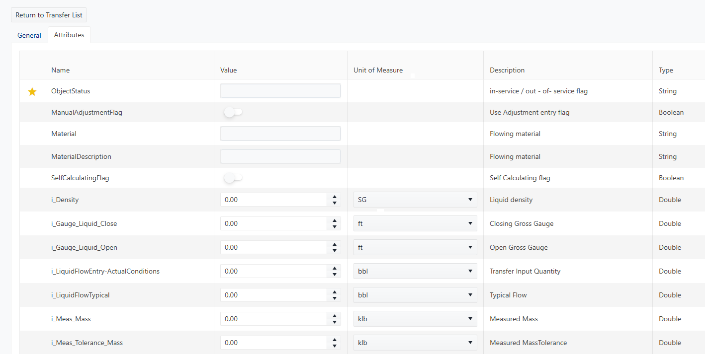 The Attributes sub-panel displays all the transfer attributes that are allowed to be set or changed, for any of the transfer's attribute values.