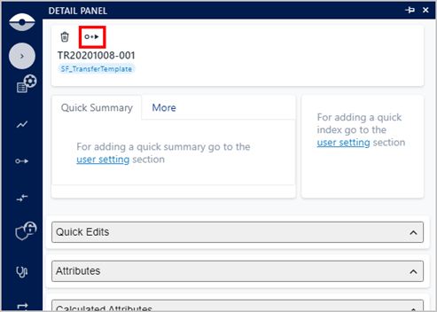 When the element displayed in the Detail panel is a transfer, the modify transfer icon is enabled.