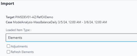 The Elements option allows to upload data in the Case Elements Attributes (Processes, Measurements, Inventories, Receipt and Shipment Points and Flows).